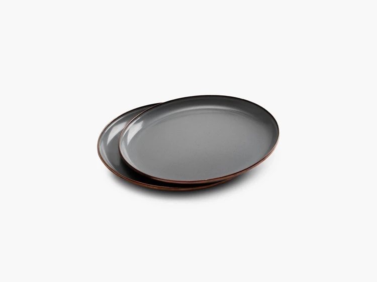 Enamel Dishware. Maak de set compleet: Espresso kopje & Ontbijt bordje. Zoiets kan alleen Barebones maken: Prachtig geëmailleerd stalen serviesgoed met een koperkleurige RVS stootrand. Verpakt per 2. Triple Dipped (3 x geëmailleerd). Matte afwerking. Voor binnen & buiten. Vaatwasser bestendig. Hitte besteding tot 700o. Onbreekbaar.