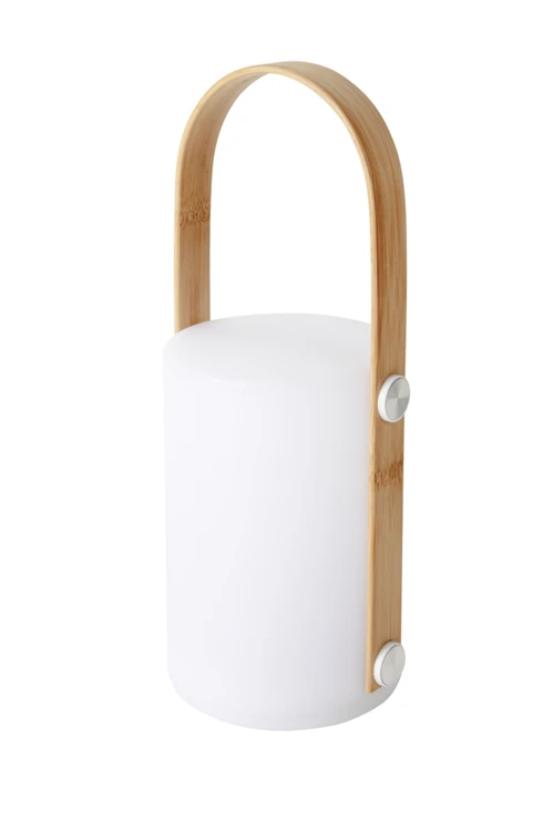 Een sfeervolle oplaadbare tafellamp met een stijlvolle outdoor uitstraling. Geeft een prettig licht door de warme witte LED verlichting. Voorzien van 3 lichtstanden, een kunststof behuizing en een bamboe handvat. De ingebouwde Li-ion accu kan worden opgeladen met een meegeleverde USB kabel. Ideaal voor op een tafel of kastje.