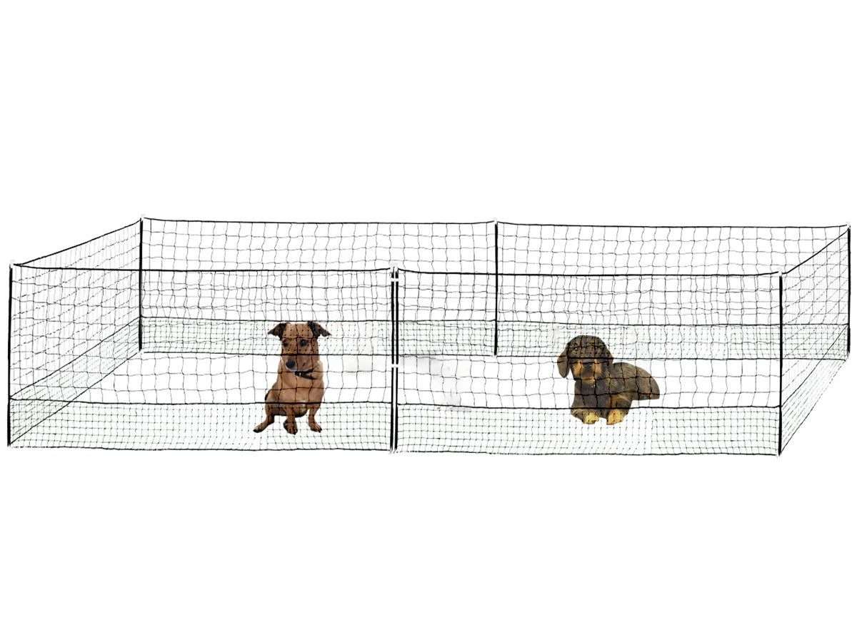 Het omheiningsnet heeft een lengte van 18 meter en is ongeveer 111 cm hoog.