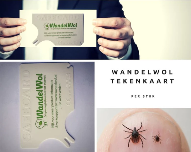 De WandelWol Tekenkaart is een handig hulpmiddel bij  het verwijderen van teken. De mogelijkheid om de teek samen te knijpen of te verdrukken niet aanwezig zoals bij de tekentang het geval is.