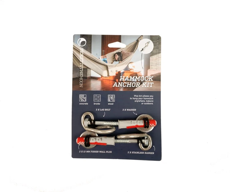 Met de TTTM Hanging Kit kunt u uw hangmat binnenshuis opzetten of waar u maar betonnen of stenen muren vindt.
